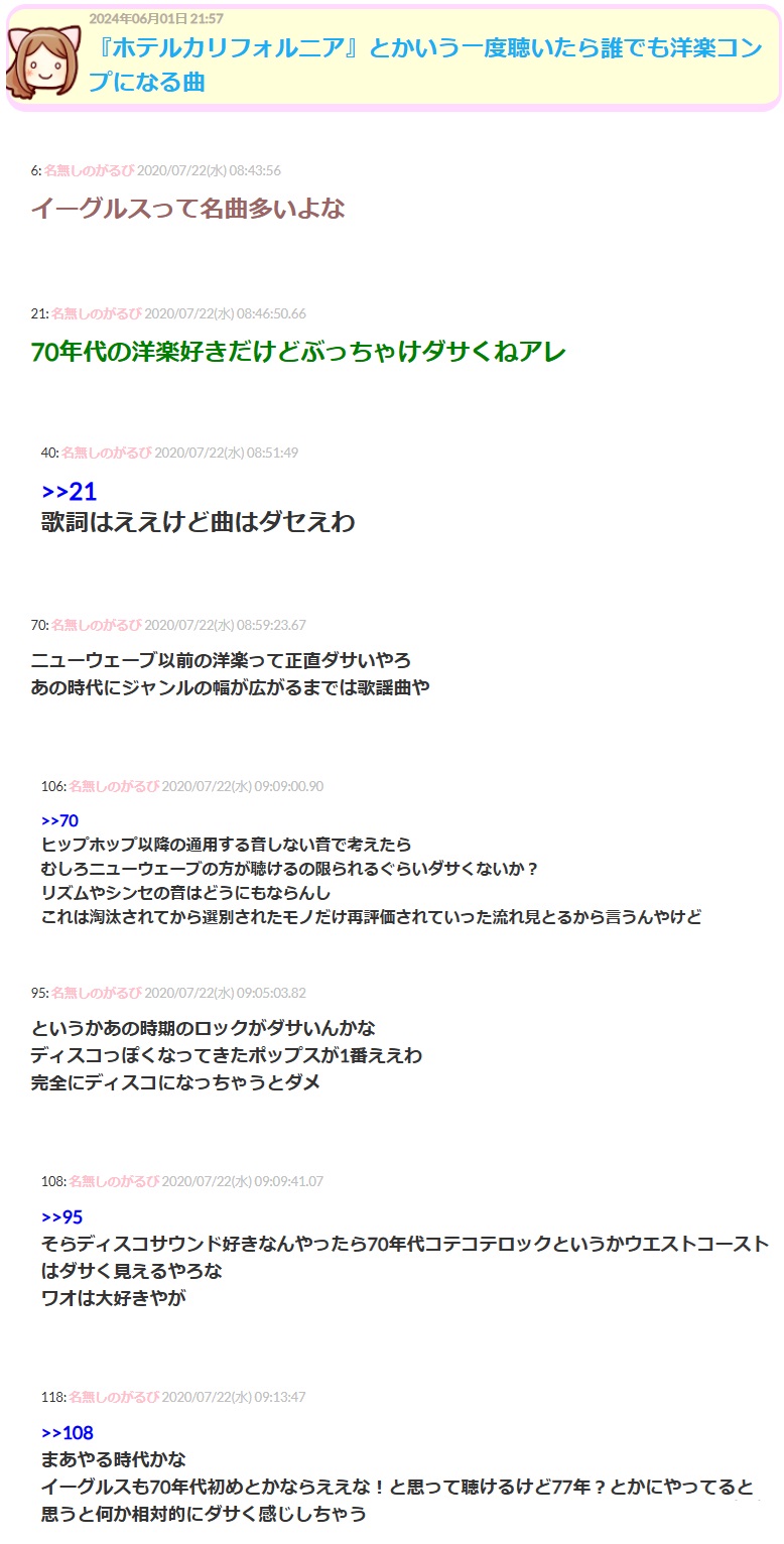 004 | 名無しさん | 2013/04/17(水) 21:26:44 | でもさあ、イーグルスライヴ聞いてるとそう | 画像なし |